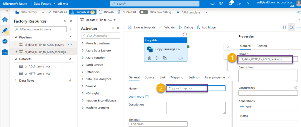 Open Data Factory UI and let’s start implementing the pipeline to fetch the ranking files.