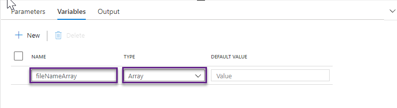 Let’s add some logic to split the pipeline parameter fileNames into an array of strings. For that, we will add a pipeline variable.